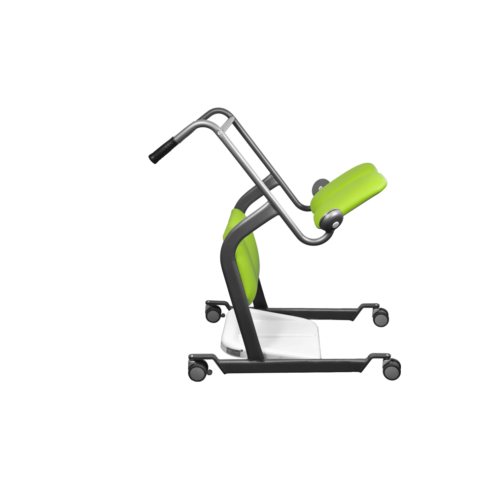 Le dispositif d'aide au transfert et à la station debout Mover est une excellente alternative à d'autres systèmes car il permet un soutien confortable grâce à ses plaques d'assise pivotantes rembourrées et ses genouillères. Le Mover permet un transport rapide, stable et sûr du patient du lit au fauteuil ou aux toilettes ou vice versa. Les roulettes arrière peuvent être bloquées à l'aide de freins. Le Mover convient au déplacements de patients qui ont des difficultés à marcher ou à se tenir debout.